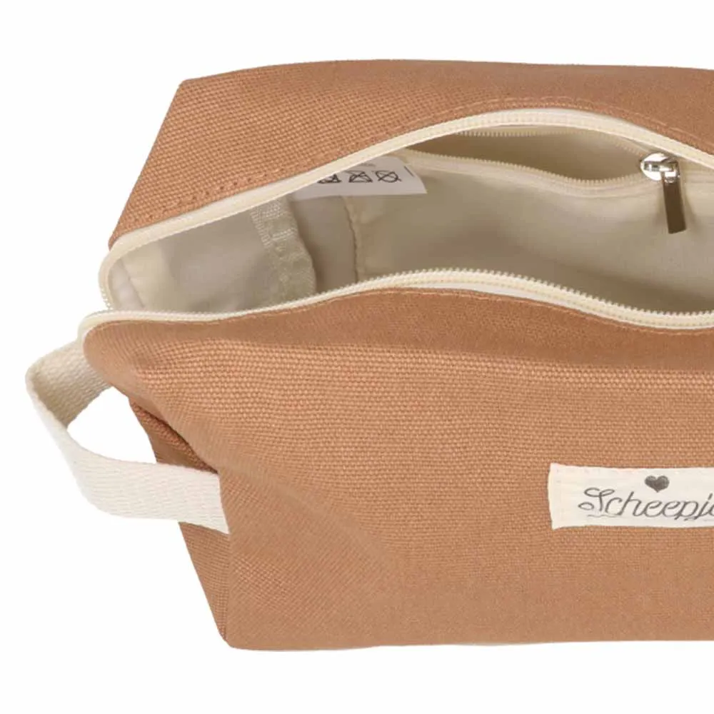 Dies stilvolle und praktische Etui mit Reißverschluß von Scheepjes verstaut Häkelnadeln, Stricknadeln, Schere und weiteres Zubehör. So ist alles immer griffbereit. Es kann aber auch für andere Zwecke z. B. als Kulturbeutel verwendet werden. Der unifarbene, robuste Stoff besteht aus einem Materialmix von Baumwolle und Polyester. In der Innenseite befindet sich ein Reißverschlussfach für Kleinkram.